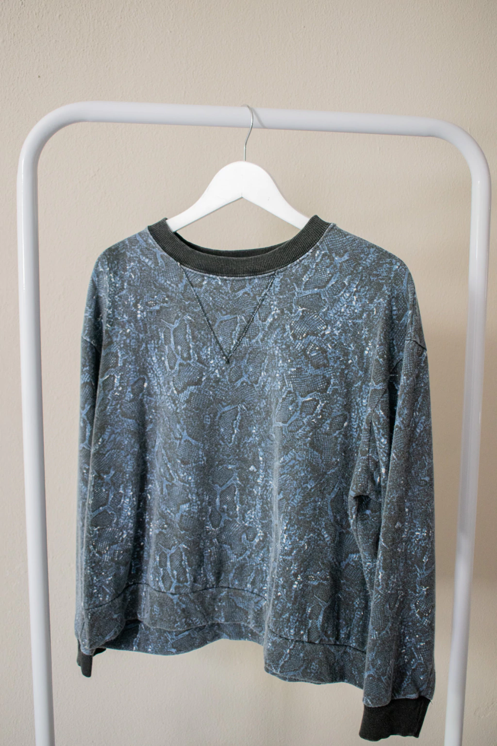 Buzo confeccionado 100% en rustico estampado premium de fit relajado con efecto washed*. De hombro caido sin llegar a ser oversize, largo debajo de la primera cadera y escote redondo. Como detalle tiene triangulo aplicado en escote y detalle de cuello y puños en reeb vintage