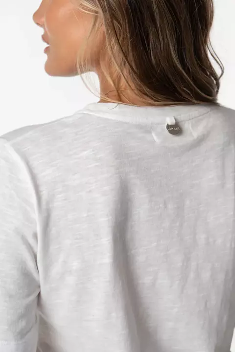 Remera de algodón flame 100%, con manga por encima del codo y calce relajado